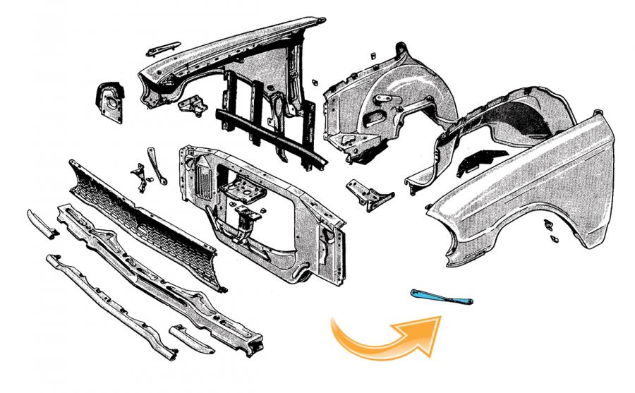 Reproduction fender to core support brace for the 1961-64 Ford Galaxie. Stamped from high quality heavy gauge steel on our exclusive new tools, each brace features the correct shape, size, bends and holes, like original. Arrives EDP coated to help protect against rust and corrosion.
