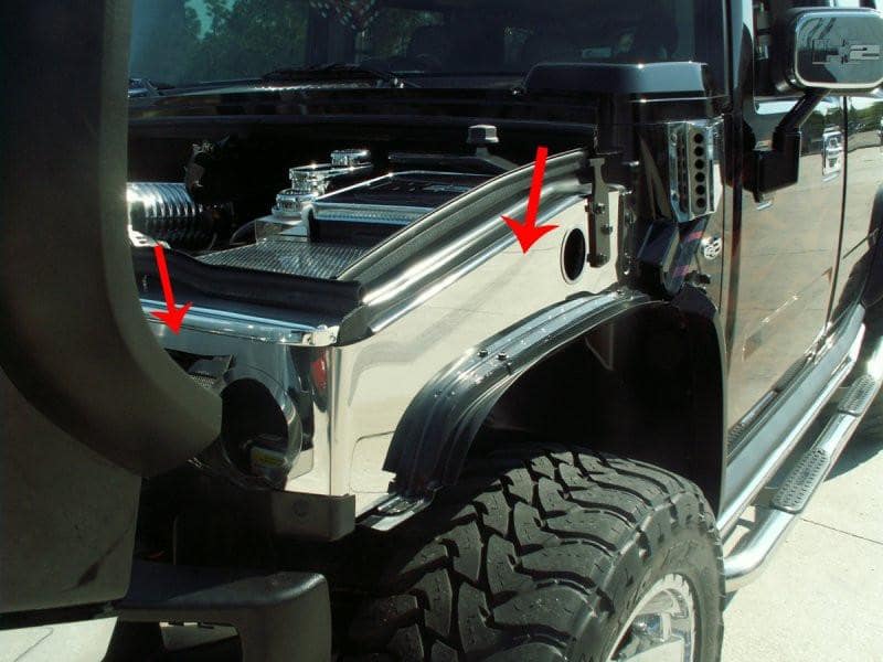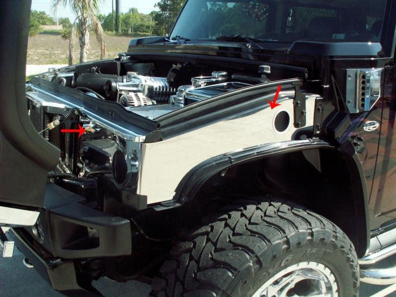 Dress up your Hummer H2 with our Polished Stainless Steel, Inner Fender Covers. These trim pieces are designed to fit over the front inner fenders and add a clean stylish look to your Hummer H2 engine bay.