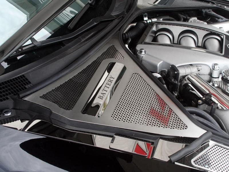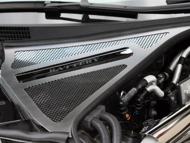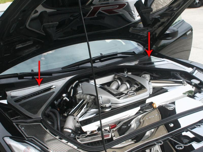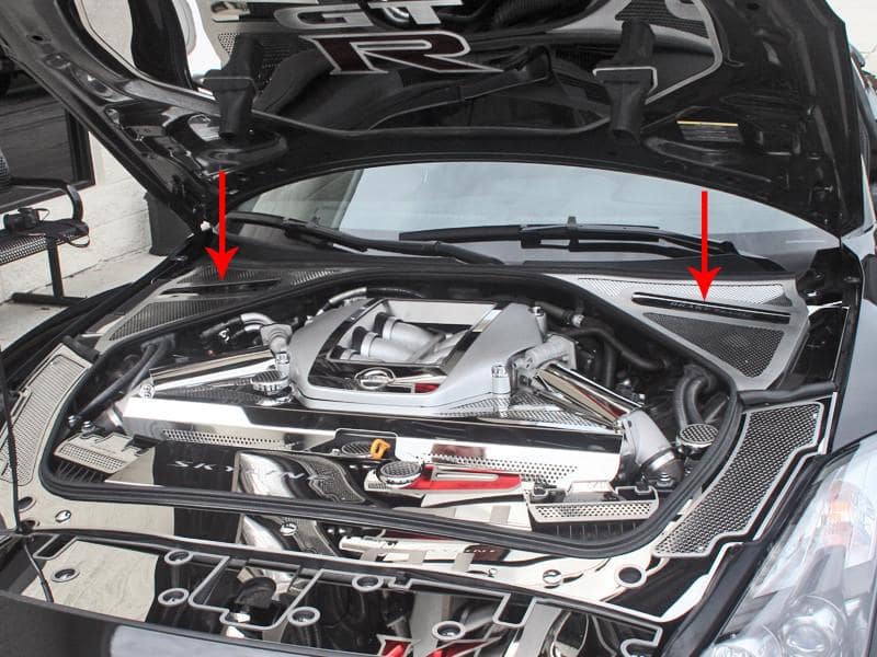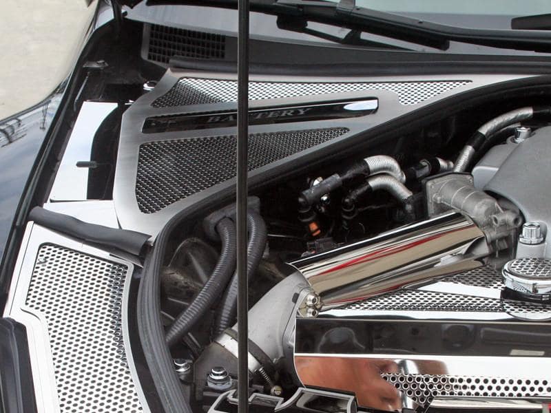 American Car Craft 2010-2013 Nissan GT-R - Battery / Brake Fluid Cover 4Pc, Perforated Stainless Steel 163005