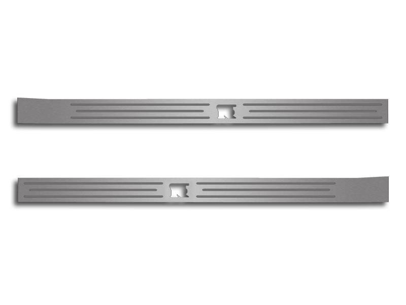 Dress up your Nissan GT-R with our Brushed - Stainless Steel, Doorsills with Polished accents. These trim pieces are designed to fit over the doorsills and add a clean stylish look to your GT-R's interior. Doorsills are cut-out to accent factory GT-R emblem.