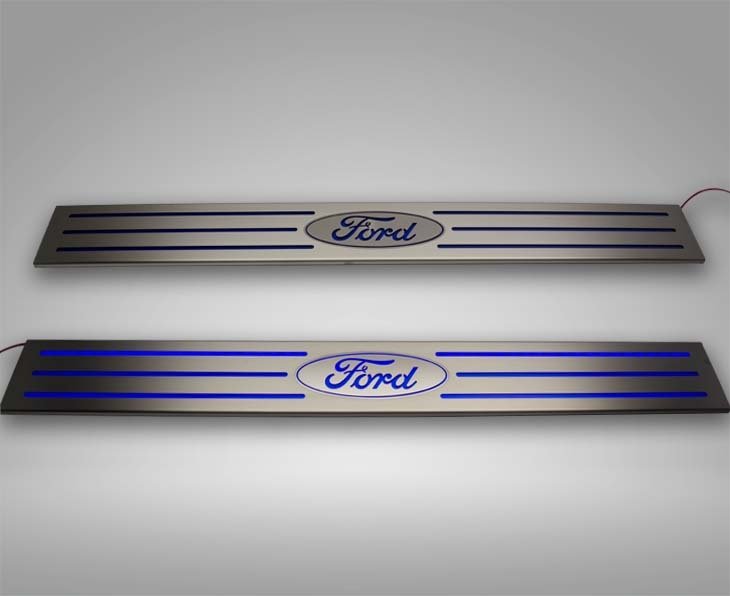 Show your Ford allegiance with our stainless steel Illuminated Ford Logo Door Sills. You'll appreciate them in both day and night. Durable stainless holds up to the rigors of your pickup truck while adding a custom style to your interior. At night they serve as a useful visual aid with mega illuminated style. Choose your color option above.