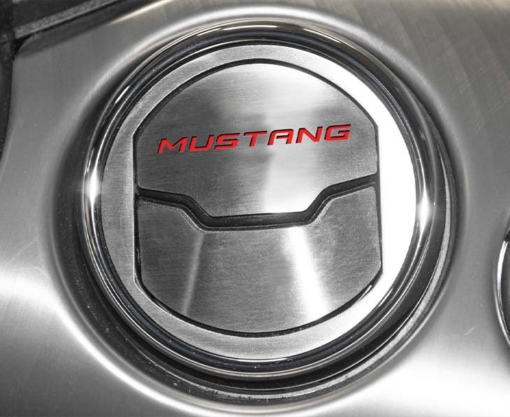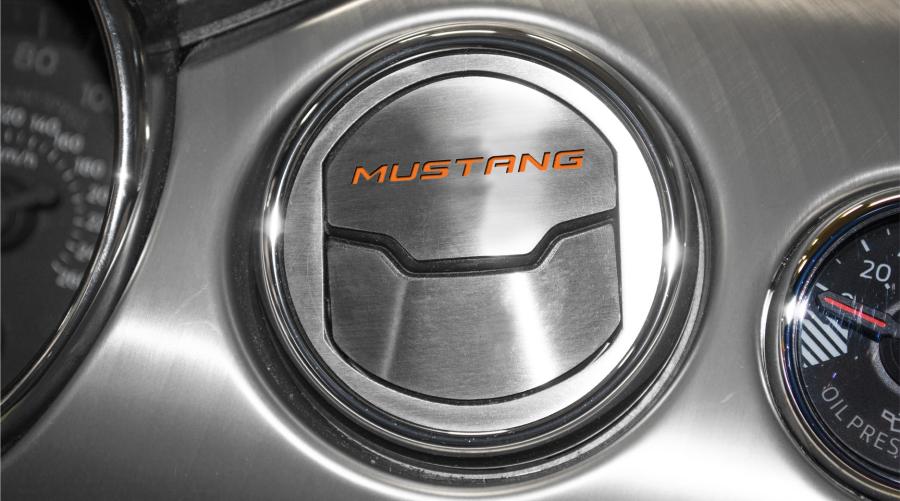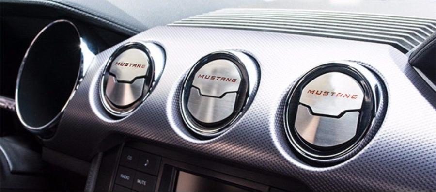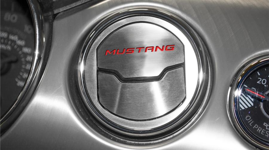 Dress up the interior of your Mustang with our peel and stick A/C Vent Trim Kit with MUSTANG LETTERING and Inlay Color Options. This Officially Licensed trim kit is handcrafted from high-quality stainless steel, right here in the USA, so you know its premium quality with a precision fit.