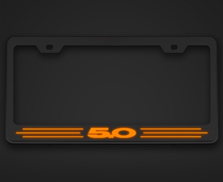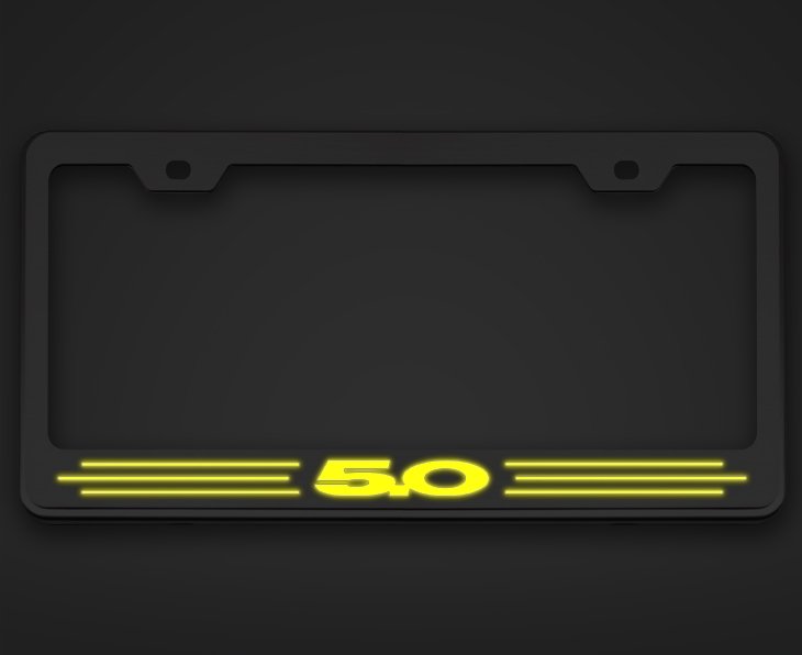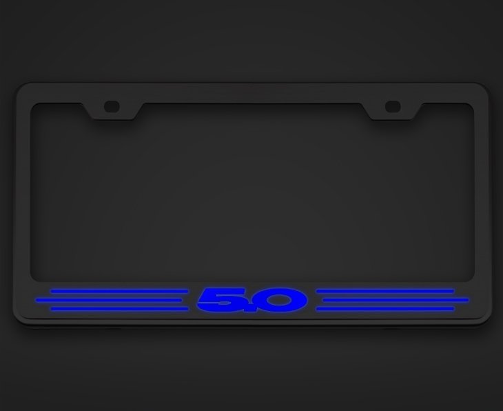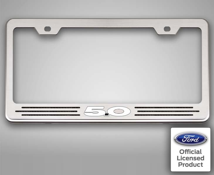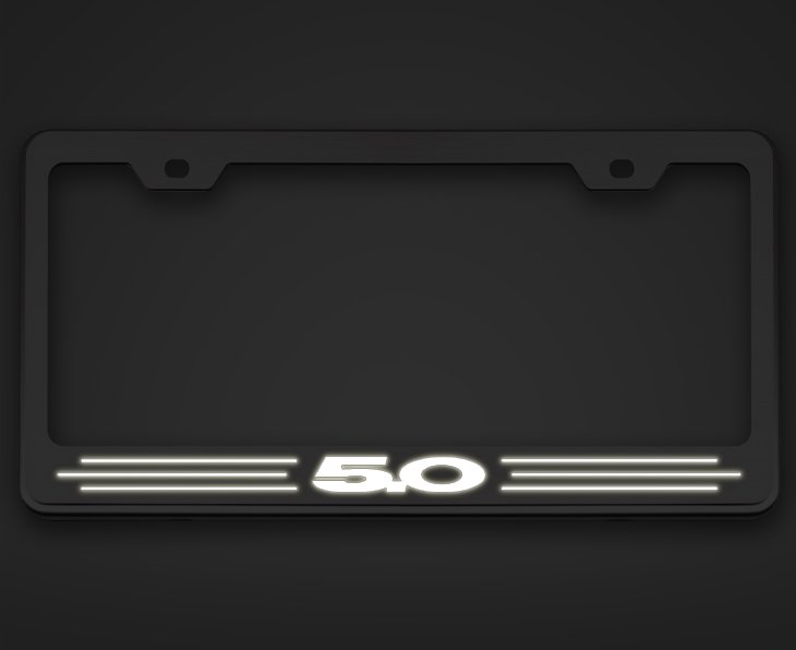 If you've got a 5.0 engine you've got speed, but do you have style You can get a license plate frame from anywhere. When you order our Custom Ford License Plate Frame with "5.0" lettering and custom color inlay you'll have something that backs up what you're putting down in foot-pounds of torque.