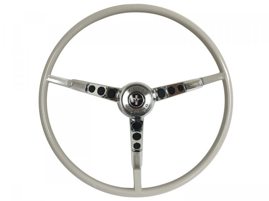 | Ford | Mustang | 1964 | Incl. 15 in. Dia. White Steering Wheel; Horn Contact Kit Pre-Installed - Spring; Ford Mustang Horn Ring Fits vehicle w/ Generator And Single Contact Horns |