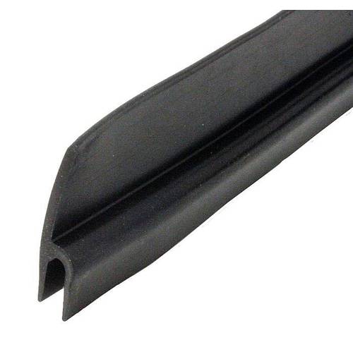 Goes at the bottom of the door to make a tight seal. It gets sandwiched between the interior door panel and the door. One 8' roll is enough to do a car or truck including 4-doors. Used on all closed cars. Can also be used on open cars if the bottom of the door no longer has the channel to accept the "T" style rubber. U.S.A.