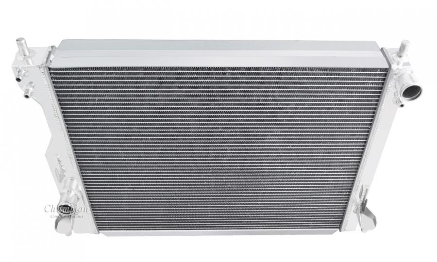 Our Economy series radiators are designed for car enthusiasts looking for an affordable cooling solution for their classic car that is nearly stock condition. Though some muscle cars or modified vehicles with a higher horsepower rating may require one of Champion Cooling’s three or four row radiators, these economy series radiators are built with two-row brazed aluminum cores that are tig-welded to aluminum tanks with approximately 14-16 louvered fins per inch, a brass petcock, and all are designed with aircraft grade aluminum. The tubes are 3/4” thick with a 1 1/2” core. In most cases this all aluminum design allows for stronger wider tubes that enable a two row aluminum radiator to outperform a three row copper brass of equal dimensions, while also being more affordable and lighter weight. We recommend this series for most applications with 500 horsepower or less.