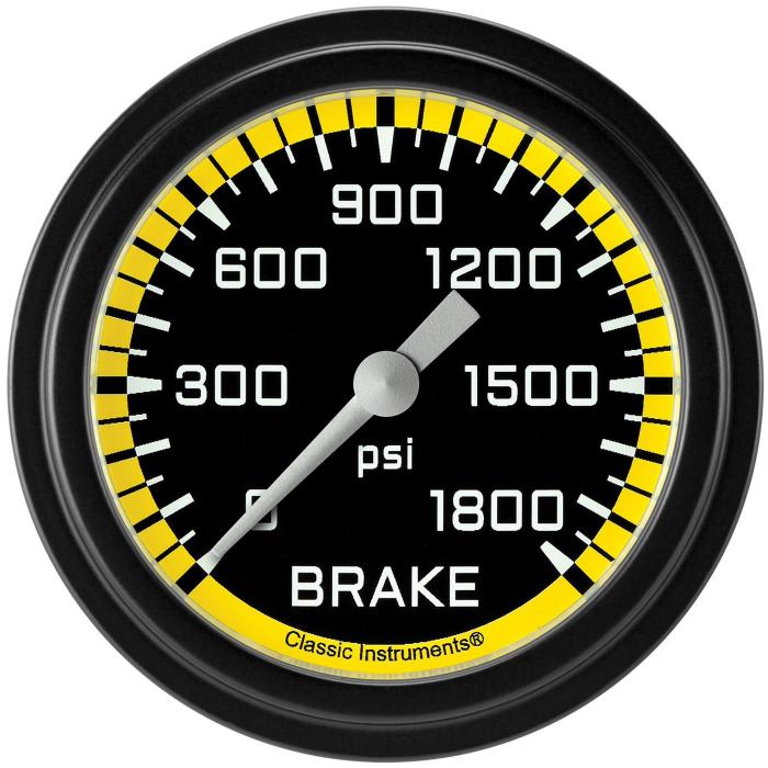Classic Instruments Autocross Yellow 2 5/8" Brake Pressure Gauge AX367YBLF
