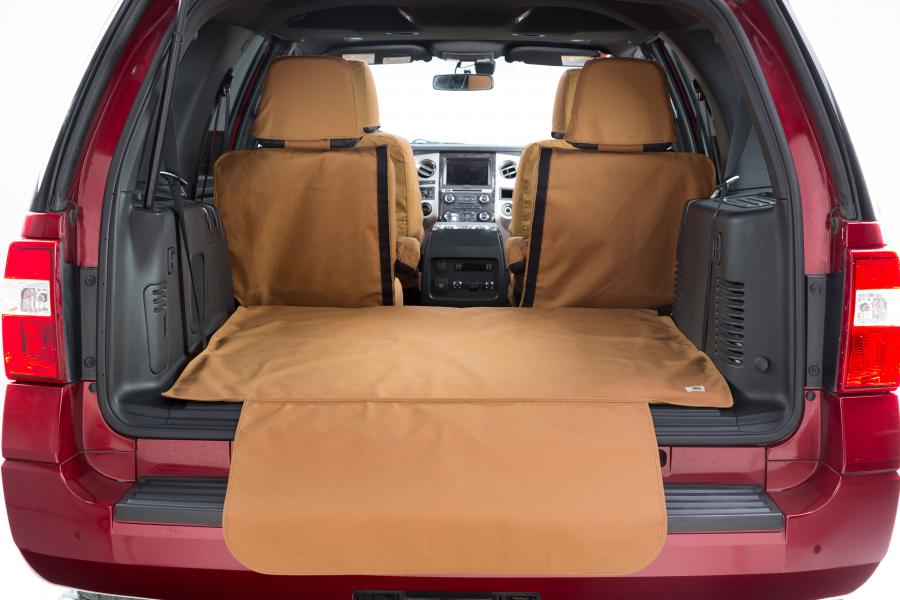 Carhartt Custom Cargo Area Liner protects the entire floor area and seat back. Heavy-duty duck weave fabric protects against dirt, dust, grime and spills. Fold-out bumper flap included for additional protection.