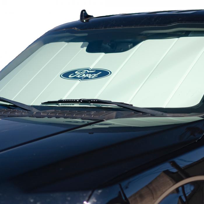 The Premier Series Ford Licensed UVS100 Custom Sunscreen protects Ford vehicles with sturdy construction and premium features. Custom Ford logos provide styling and personalization to your Ford vehicle.