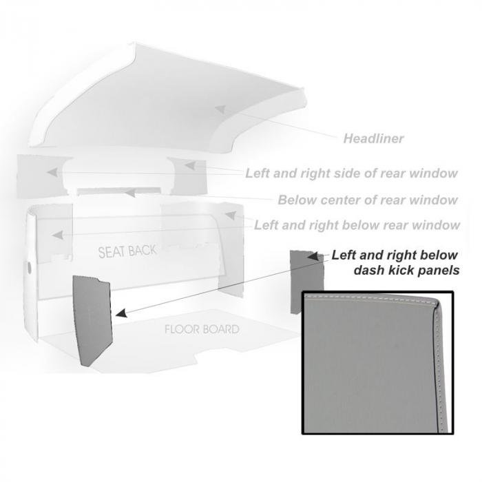 • Above under dash cowl kick panels come complete with 6 clips and material sewn on front edge.