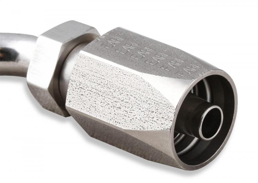 Earl's redesigned the power steering hose ends w/ a more attractive one-piece design that eliminates the brazing of the bent tube to the other components.