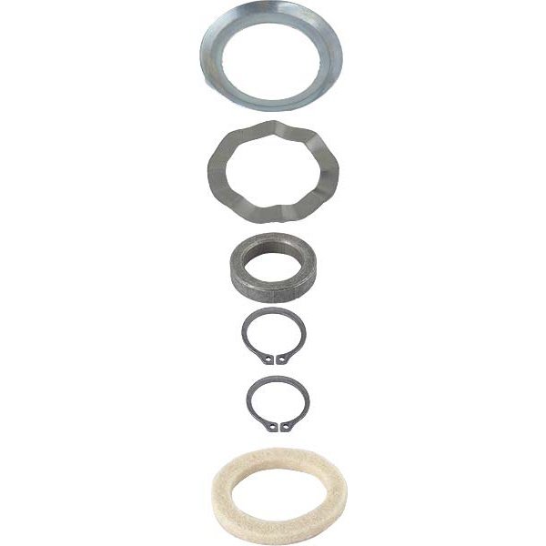 This set contains the bearing retainer, retainer felt, wavy washer, (2) snap rings and a bearing spacer.
