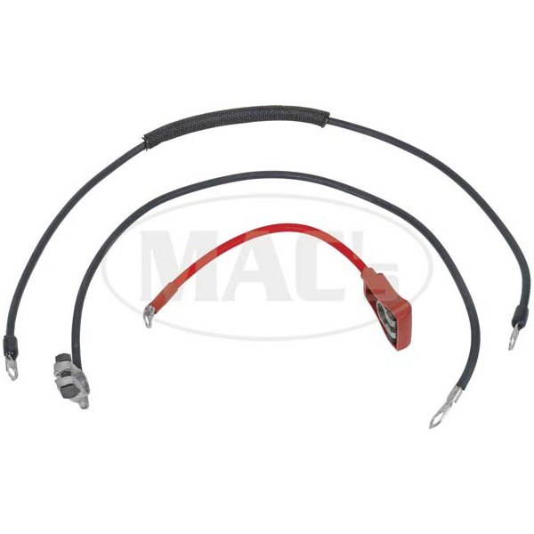We carry a complete line of quality reproduction battery cables used in Ranchero, Torino, Fairlane and Falcon. Reproduced to look exactly like the original. Features correct neoprene skin. Original Ford part numbers are stamped onto the wire to match original. These battery cable sets are a show quality reproduction and the absolute closest to original Ford cables that are available. Set includes starter, positive and negative.