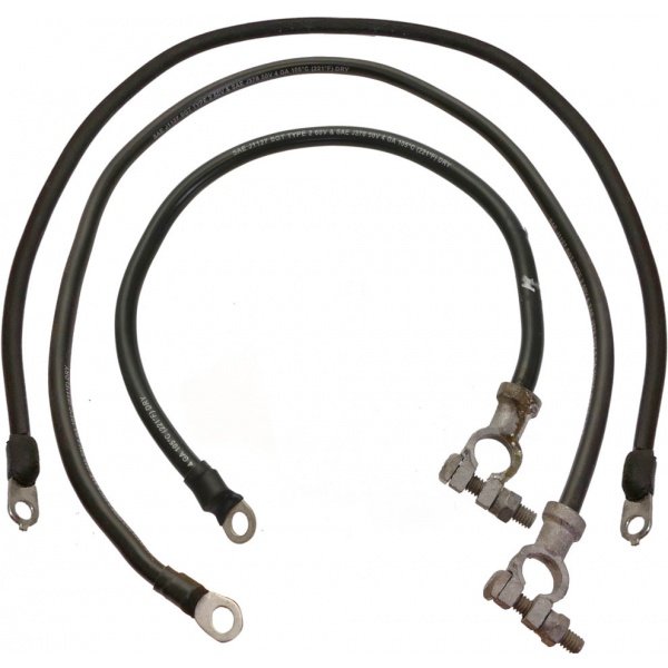 Cable sets include a battery to starter relay cable, a starter relay to starter cable, and a battery to ground cable. All terminals, boots, heads & mouldings have been duplicated to precise detail for your vintage T-Bird. The wire insulation is original neoprene rubber. A ground strap was also used at the back of the engine head and is not included in the sets.
