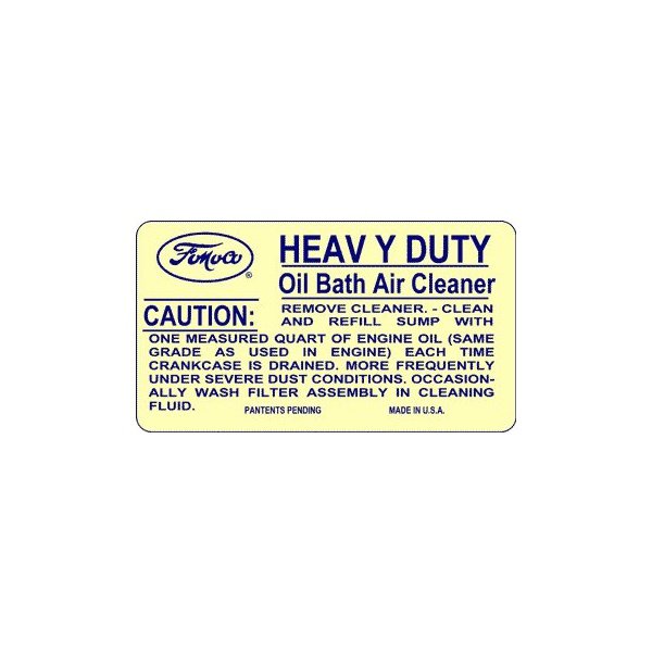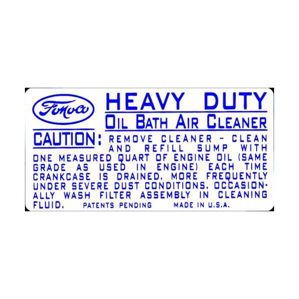 Oil Bath Air Cleaner Decal - Ford Truck: