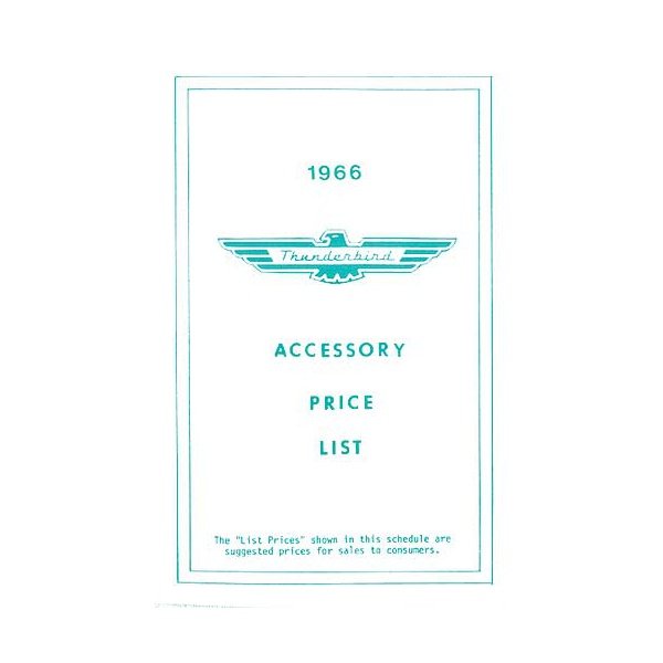 Ford Thunderbird Accessory Price List, New Car, 1966