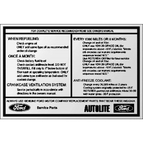 Choose from our complete selection of original engine, trunk, and interior detailing decals. All of our decals were reproduced from original Ford decals in intricate detail and feature correct shape, design, and coloring for the concours restoration. For decals not listed, please contact our sales department.