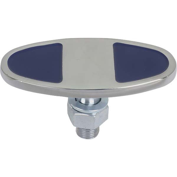 This outer bumper clamp for the 1928-30 Model A is made of forged steel and is chrome plated with blue painted inserts.