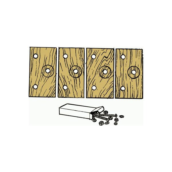 This set includes the pre-drilled wood blocks, slotted Stainless Steel bolts and KEPS locking nuts. They are used to support the hood latches.