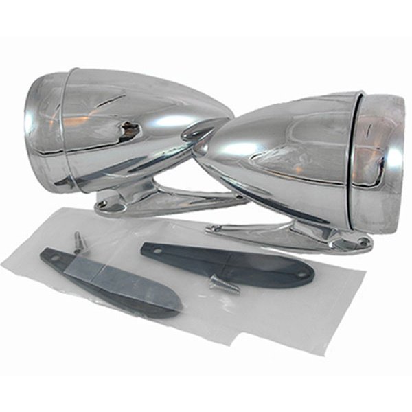 Modern cars have LED indicators built into both mirrors; this safety feature helps prevent side collision accidents by giving cars in your blind spot plenty of warning if you need to change lanes. Classic cars and especially Mustangs have a lower profile than most modern cars. Make sure that your car is noticed when you change lanes with these LED turn signal indicating mirrors. These mirrors look like stock Shelby bullet-style mirrors until the turn signals are activated; a special two way all-glass mirror hides the LEDs. There are no holes or cut-outs to mar the mirror surface. They require a simple 1-wire hook up and use "Smart Signal" technology which provides for retro-fitting into vintage cars. Two (2) mirrors included, one for right and one for left. As a bonus, they feature extra long bases to cover standard mirror mounting holes. Lifetime warranty and made in the U.S.A.!