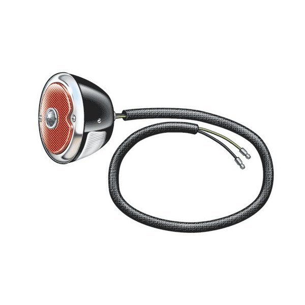 Ford Pickup Truck Tail Light Assembly - Pickup - Round - Black Housing With Stainless Steel Rim - Left - With Blue Dot Lens Installed:
