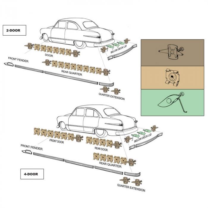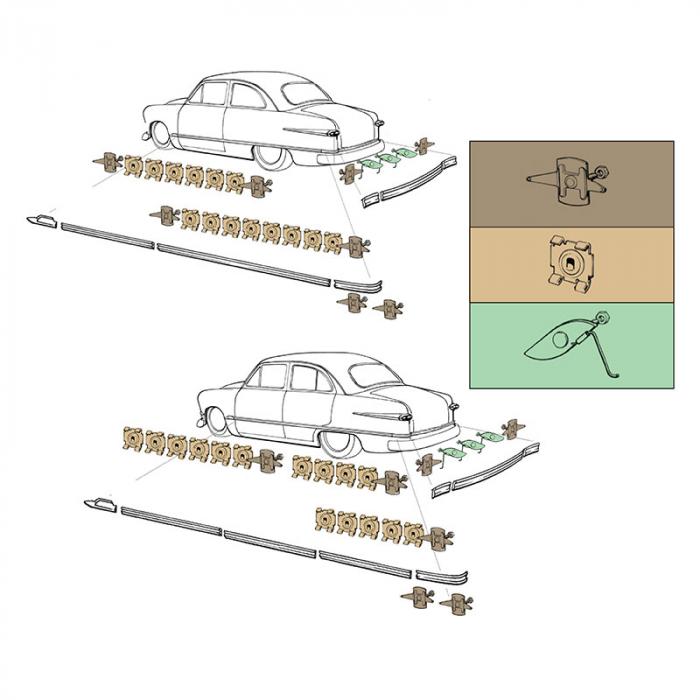 | Ford | Deluxe | 1951 | All except Crestliner, Station Wagon & Sedan Delivery |