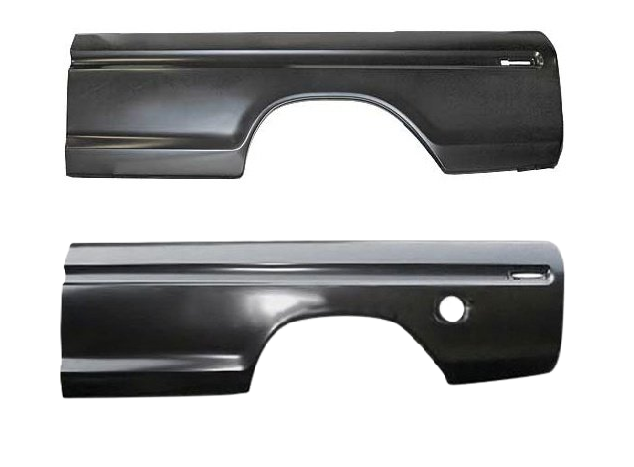 Instructions: Remove the damaged outer bedside section by cutting along factory seams. Clean and prep the surrounding metal for welding. Test fit the new bedside panel, ensuring proper alignment with the truck bed and rear wheel well. Weld the panel securely into place, grind welds smooth, and apply seam sealer for added protection. Finish with primer and paint before reassembling the bed components and trim.