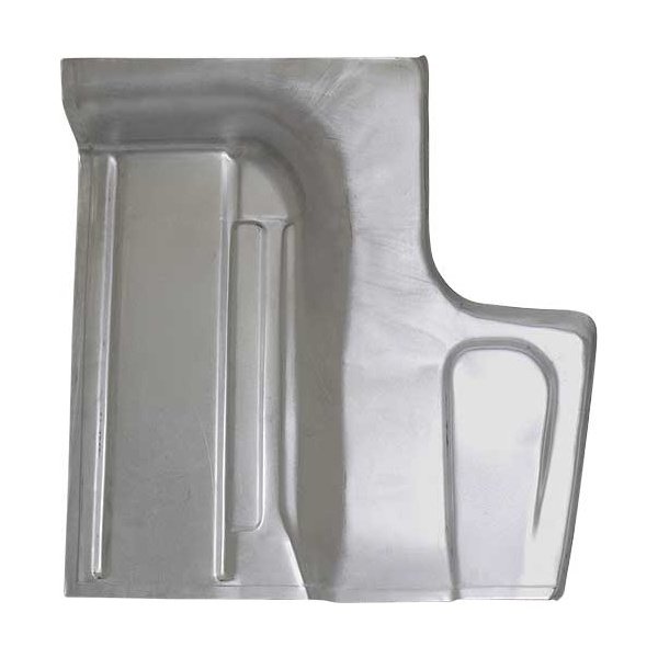 Now you can replace the entire trunk floor on your 49-51 Ford. The left and right main sections extend from side to side and from the top of the rear axle riser to our rear section. This 18 gauge die stamped panel has all the OEM shapes and curves for the highest quality restoration. The spare tire well is not cut out. This allows you to go with a flat floor, but if you want the original look, open up the floor and install our beautifully crafted spare tire well.