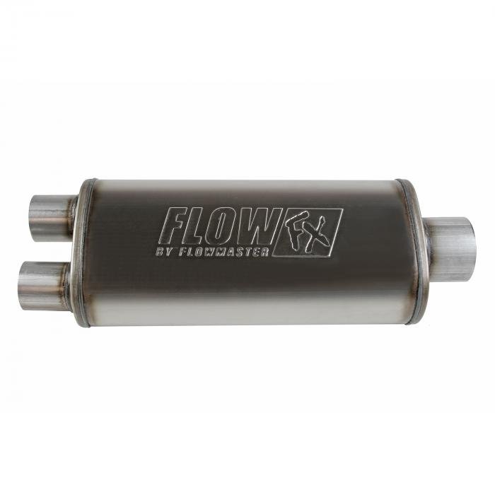Flowmaster's FlowFX series mufflers deliver a moderate performance tone for the enthusiast looking for an exhaust note that is different from the "chambered" muffler sound. The interior features a large 3.50-inch "straight-through" stainless steel perforated core, surrounded with high-temperature sound absorption materials delivering a deep traditional mellow tone. The internal flow design is reversible, so the muffler can be installed in either direction to best suit the vehicle application and offsets needed. Features include fully MIG-welded "bright" 409 stainless steel construction with the FlowFX logo embossed on both sides of the case. The FlowFX line of mufflers is perfect for the person looking for a show quality performance muffler at an economical price point and in a compact sized case.