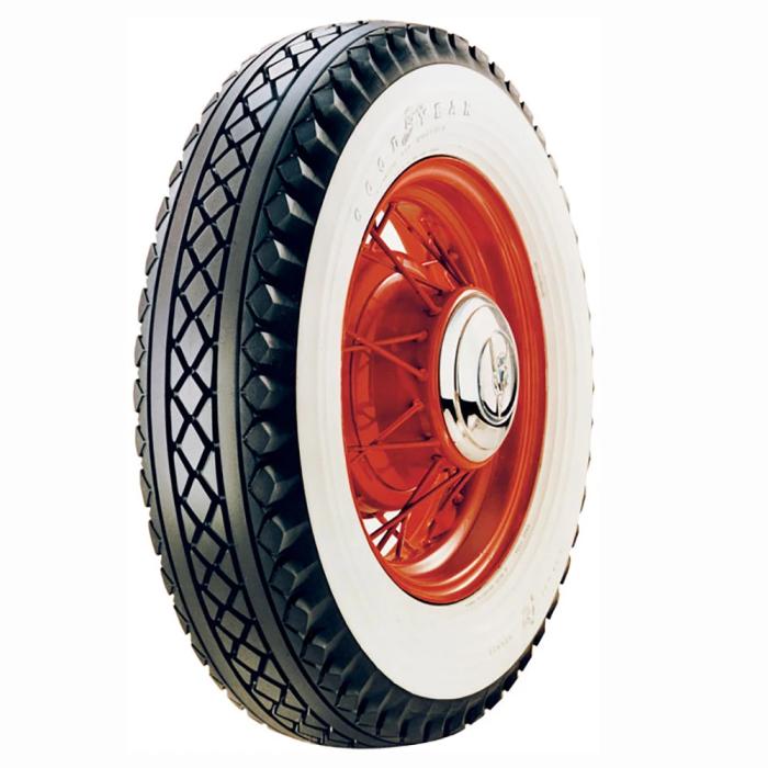 The Goodyear Deluxe All-Weather 600-16 bias ply tire is an excellent choice for a Pre-WWII restored car or truck and features a 3.50 inch wide whitewall (3.5 inches). The 600-16 size became the industry standard from 1935 through the late 1940's, and this tire features the famous diamond tread pattern with Goodyear lettering in the whitewall. This iconic tire is perfect for a Ford or Chevrolet passenger car, and also works well on light trucks from the era. This tire is also an authentic choice for hot rods and customs. This tire features four-ply construction with polyester cords, and it is designed to be used with a tube.