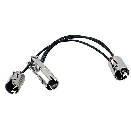 The complete socket assembly for the late 1928-29 headlight. This is a Two Bulb Socket Assembly (high low bulb in the center, single parking bulb upper) with the larger 13/16" I.D. socket (A-13073-S) at the bottom of the headlight. Socket assembly includes the socket that pokes out the bottom of the headlamp for your conduits wires to connect. Sold individually.