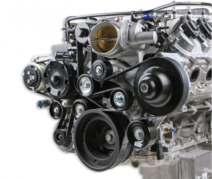 Holley's complete accessory systems for LT4 and LT5 applications have all accessories pulled up and in tight. Plus, they add the much needed hydraulic power steering solution. There are no shortcuts here. Holley incorporates a splined dual bearing system that eliminates all belt stresses on the P/S pump's internal bearings, assuring long life. The supercharger drive maintains the original and optimized belt path and tensioner. The accessory layout is as if the original manufacturer had designed it for your swap application. Included with each drive system is a throttle body angle correcting adapter that better positions the TB for swap applications as opposed to the aggressive original application intended angles. Versions of these accessory drives are available for both wet and dry sump applications. Patent - www.holley.com/patents/