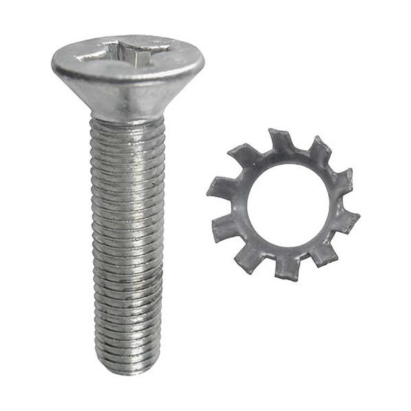 4 countersunk Phillips flat-head screws and black oxide-finish external-tooth lock-washers.