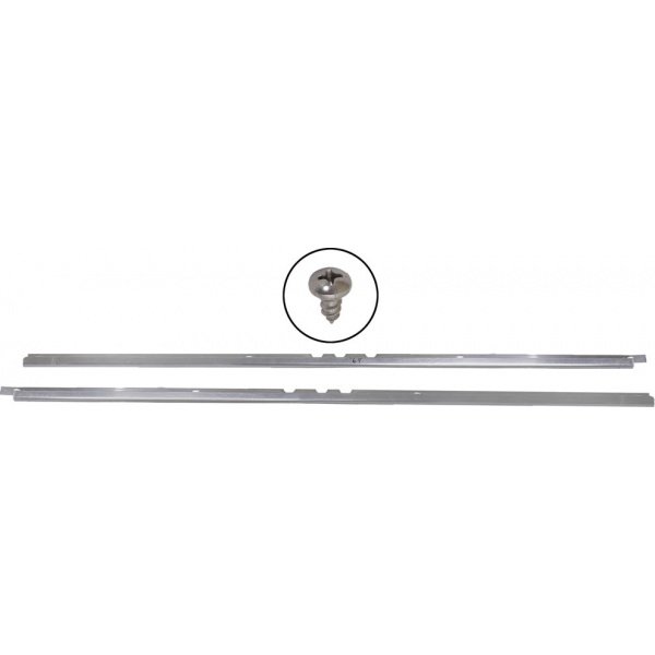 Beautifully manufactured stainless steel lower door trim. These parts are always worn and rusted on original cars. These new pieces are quality made in the usa and will make the difference in your interior restoration.