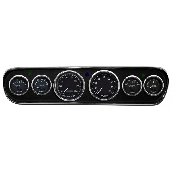 Air core instruments feature incandescent perimeter lighting and short sweep minor gauges. Tachometers operate on 4-6-8 cylinder configurations.