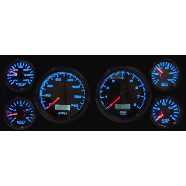 "Performance gauge packages for 79-86 Mustang offer great value in NVU's most popular style. Traditional short sweep perimeter lit gauges have a great performance look without the over the top racing look.