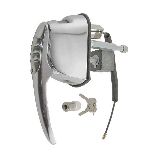 Everything needed to install trunk lid handle/lamp assembly. Complete top quality kit includes handle, base, glass lens and gasket lens mounting plate, 6 volt and 12 volt bulbs, wiring, rubber pad, key cylinder with 2 keys and mounting hardware.