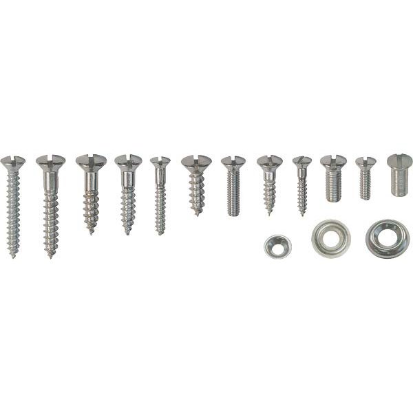 This interior trim screw set includes all screws necessary for the complete interior of the car, including: window frame, dash rail, instrument panel, door sill, dovetail, etc. Also when required, the tube nuts and convertible rear window frame screws are supplied. These kits are not a general mixture of hardware, but exact pieces for the stated year and body style. Interior trim sets are US made.