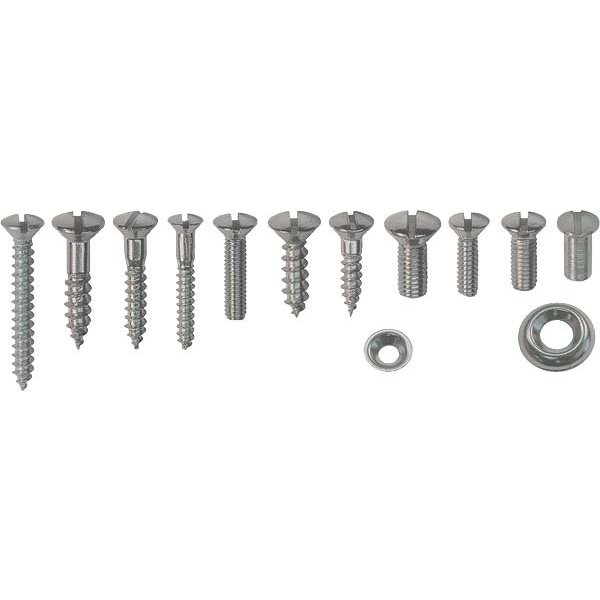 This interior trim screw set includes all screws necessary for the complete interior of the car, including: window frame, dash rail, instrument panel, door sill, dovetail, etc. Also when required, the tube nuts and convertible rear window frame screws are supplied. These kits are not a general mixture of hardware, but exact pieces for the stated year and body style. Interior trim sets are US made.