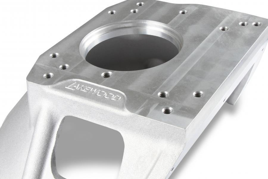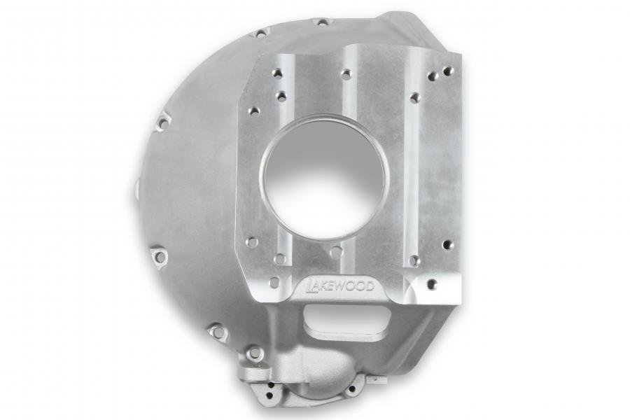 This Lakewood cast aluminum bellhousing kit connects Big Block Mopar engines to Mopar 3-Speed and 4-Speed Transmissions (A-833, A-903, A-250, and A-230) or Ford-style TKX and TKO transmissions. Designed as a compact, lightweight option for transmission swaps or upgrade. It can use either a 130 or 143-tooth flywheel and a 10.5 or 11-inch clutch. It is suited for factory-style mechanical or hydraulic clutch actuation and has dual starter positions to provide ultimate combination options and fitment.