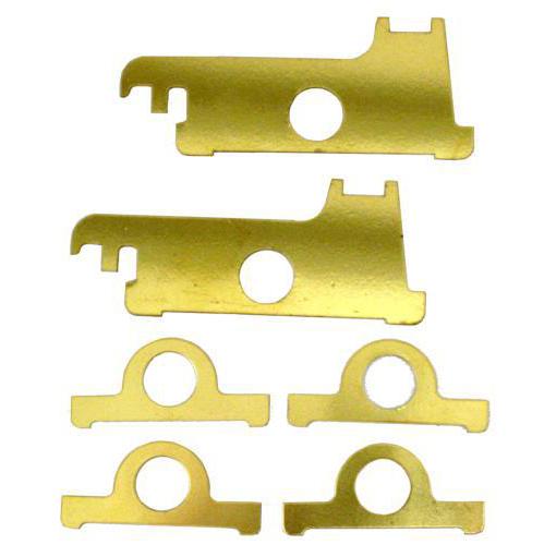 Made from laminated shim stock. Two shims for rear main, and four for center and front main bearings..032" thick, .002" per lamination. U.S.A.