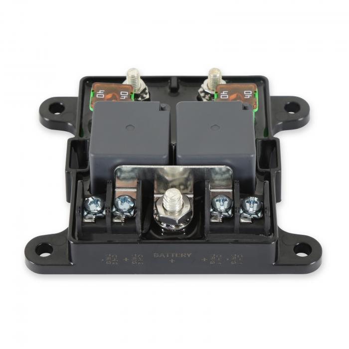MSD relay modules are designed to be easily installed in most automotive electrical systems where a high amperage relay is needed. These relay modules are perfect use with high amperage electric fuel pumps and high CFM electric cooling fans. Each relay comes with a 40amp fuse, however lower amp fuses can be installed if required. The relay housing comes with a labeled lid that snaps into place providing a clean installation, and protecting the main power stud and triggers from contamination or accidental contact.