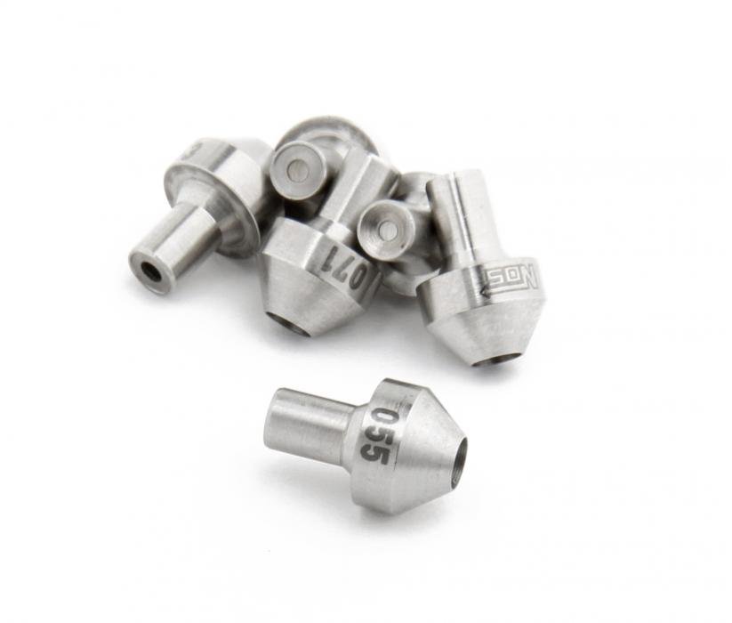 Super Powershot Precision SS™ Nitrous Flare Jet Package Of 6 Includes 1 Each Of Sizes 47, 53, 55, 61, 63, & 71 . NOS worked with experts in precision hole drilling to develop a proprietary manufacturing process for our new Precision SS™ jets during years of exhaustive research and development. The result significantly raises the bar in terms of jet accuracy and precision and renders all the competition's jets obsolete.