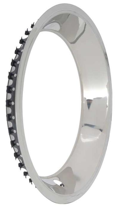 Quality reproduction Rally wheel trim ring for 15x7 wheels. Manufactured in quality stainless steel for a long lasting quality appearance. Get the same OEM look with this superb reproduction. Fits 15" x 7" Reproduction Rally Wheels Only.
