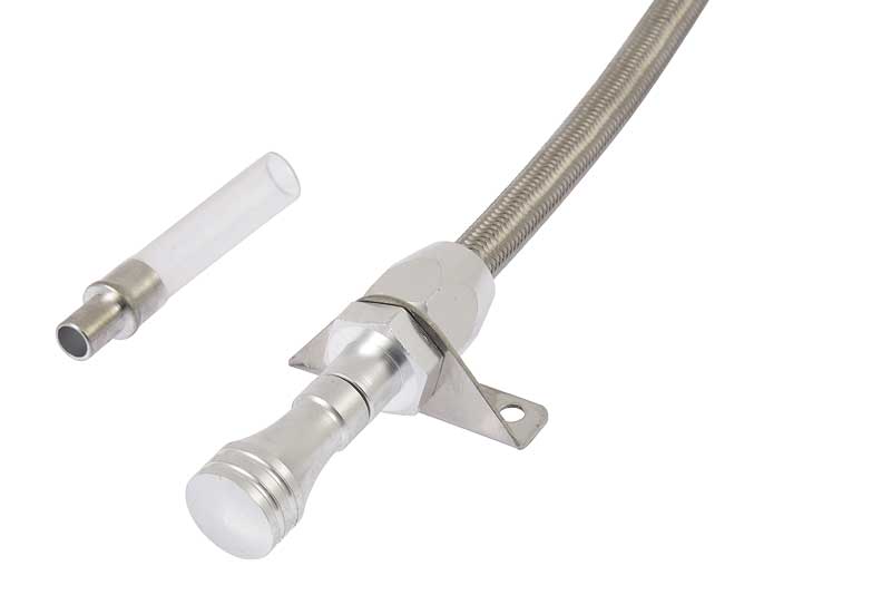 You will have flexibility with this transmission dipstick designed for use with GM Powerglide transmissions. This firewall mount dipstick features a flexible stainless steel braided cable, aluminum knob, and a fill tube.