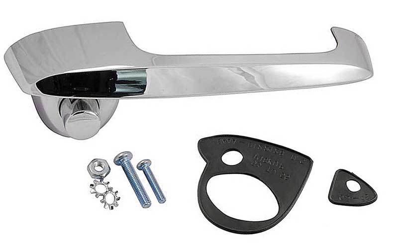 Reproduction passenger side outside door handle for 1953-60 Ford F100, F250, and F350 Pickup Trucks. This high quality reproduction features OE-style die-cast construction, and a triple chrome-plated finish. Includes pads and hardware. Replaces Ford part# BAAA-8122400-B.