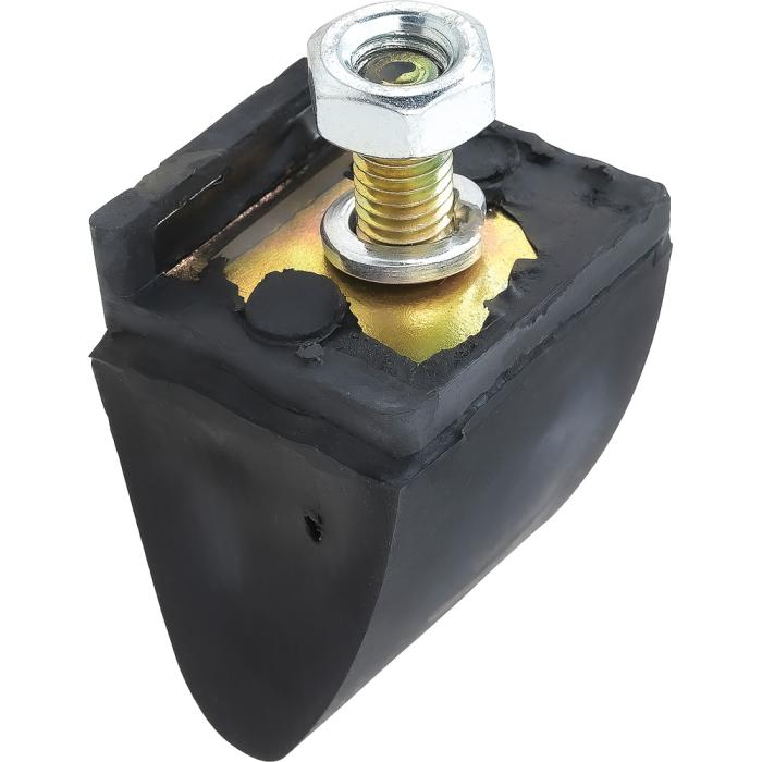 Reproduction front suspension upper control arm bumper for various 1965-66 Ford and Mercury 6-cylinder models including Mustang, Falcon, Ranchero, and Comet. These bumper stops mount on the outer shock tower and prevent the upper control arm from bottoming out on the body/chassis of the vehicle. Each molded rubber bumper is manufactured to exact specifications and replaces the original exactly. Includes stud and nut for installation. 2 required per vehicle. Sold individually.