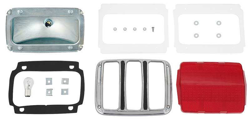Reproduction tail lamp assembly for 1964-66 Mustang. Each lamp comes preassembled for simpler installation. Starting with a stamped steel housing that includes the bulb socket, a bulb and acrylic lens is installed onto the housing, with the lens gasket in place to seal out water and the elements. A die-cast bezel with chrome oval head phillips screws tops off the assembly. Comes with the housing-to-body gasket, and includes mounting hardware. Fits left hand (driver side) or right hand (passenger side). Sold individually. Two required per vehicle.