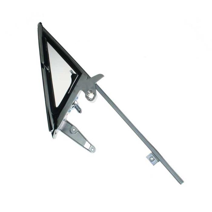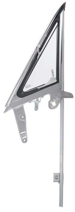 Reproduction of the original 1964-66 Mustang vent window assembly with glass. Includes the vent window frame, vent window glass, seals, and handle. This superb reproduction is manufactured to exact dimensions to install and fit as original. For Mustang Coupe, Convertible, or Fastback models.