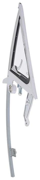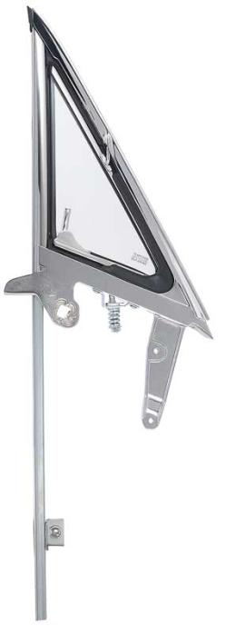 Reproduction of the original 1964-66 Mustang vent window assembly with glass. Includes the vent window frame, vent window glass, seals, and handle. This superb reproduction is manufactured to exact dimensions to install and fit as original. For Mustang Coupe, Convertible, or Fastback models.